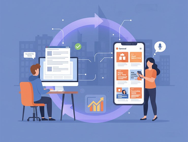 Strategi lintas format menyatukan riset kata kunci, struktur konten, dan distribusi. Selain itu, integrasi memudahkan pengguna berpindah dari carousel ke artikel pilar melalui tautan yang relevan. Di sisi lain, sinyal merek menjadi konsisten di mesin pencari dan media sosial. Dikutip dari The Art of SEO (Enge et al., 2015), konsistensi topik, arsitektur tautan, dan kualitas konten memperkuat relevansi serta otoritas halaman.