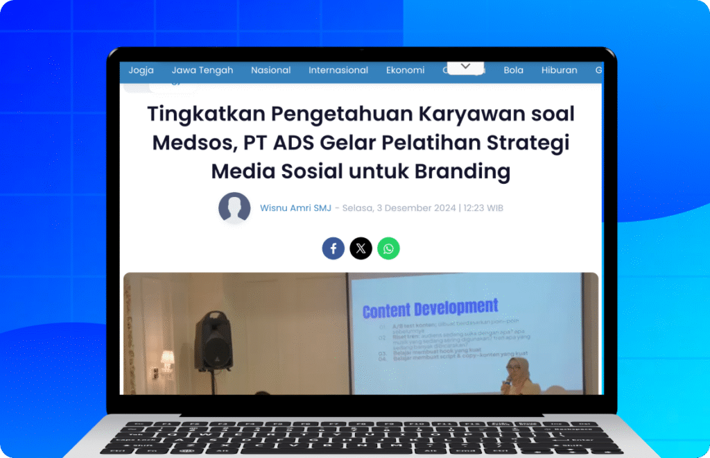 Pada 2 Desember 2024, Reka Media dipercaya oleh PT Asri Dharma Sejahtera (ADS), Badan Usaha Milik Daerah (BUMD) Kabupaten Bojonegoro yang mengelola Participating Interest (PI) Blok Cepu, untuk menyelenggarakan Pelatihan Strategi Pengelolaan Media Sosial dalam Membangun Personal dan Corporate Branding. Acara ini berlangsung di Lafayette Boutique Hotel, Yogyakarta.